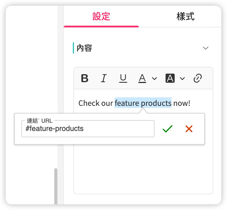 【方式2】只設定元件裡面部分文字的連結⚠️有使用風險