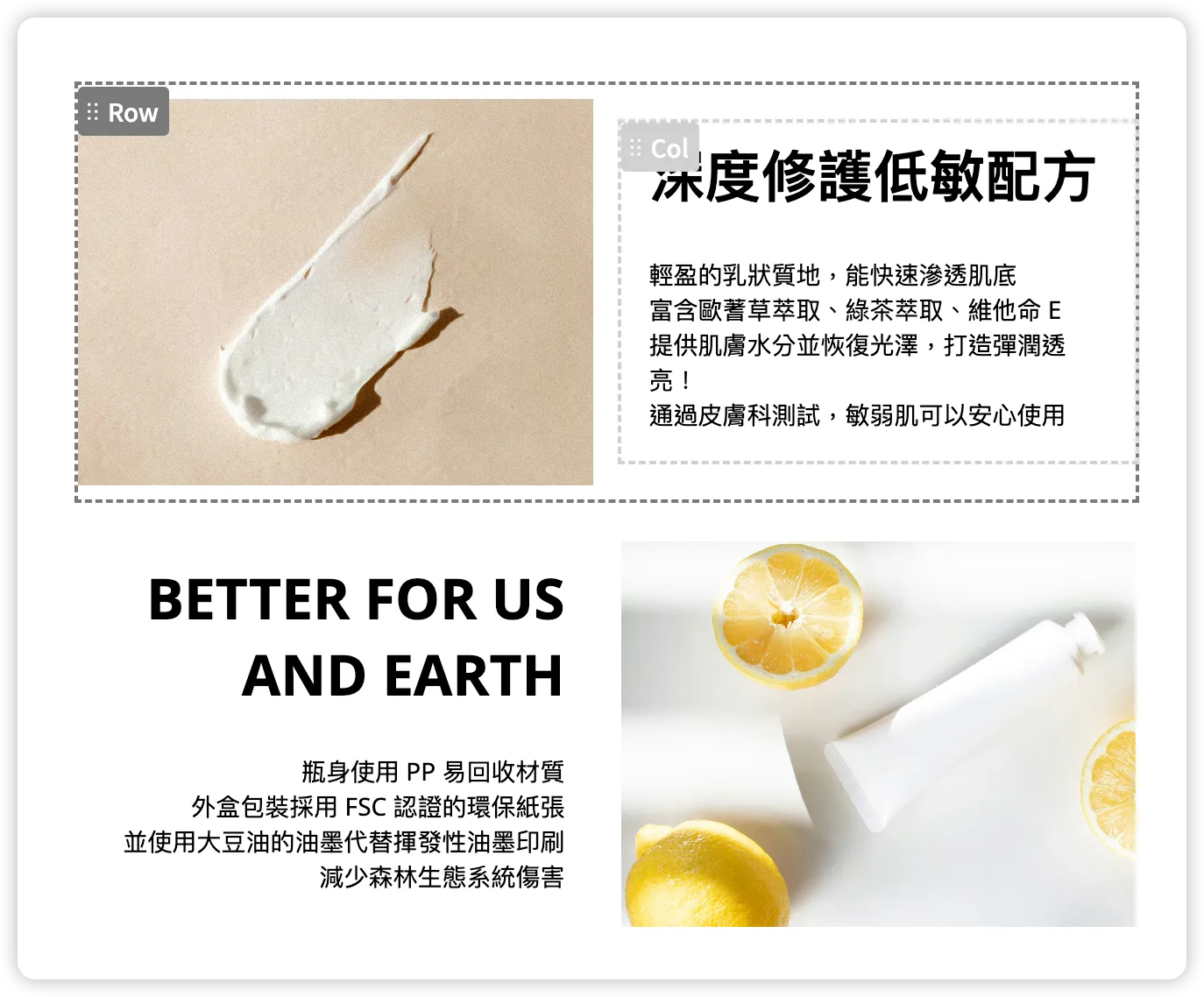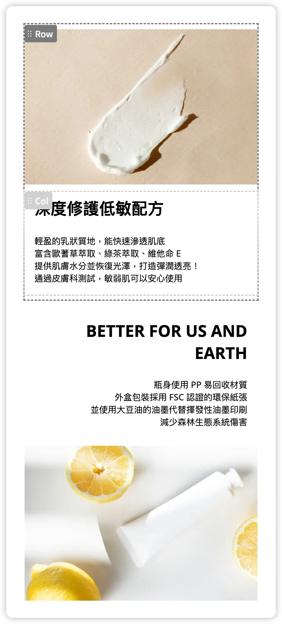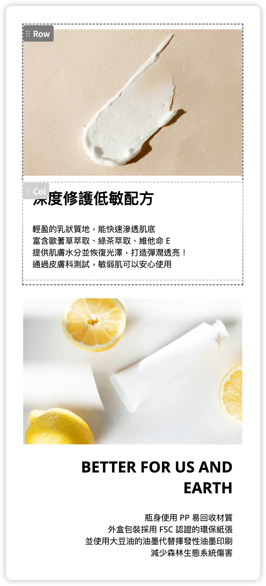 - 可分別在 desktop view 或 mobile view 啟用「倒序顯示底下的欄」功能,反轉這個 Row 內部的子 Column 的順序