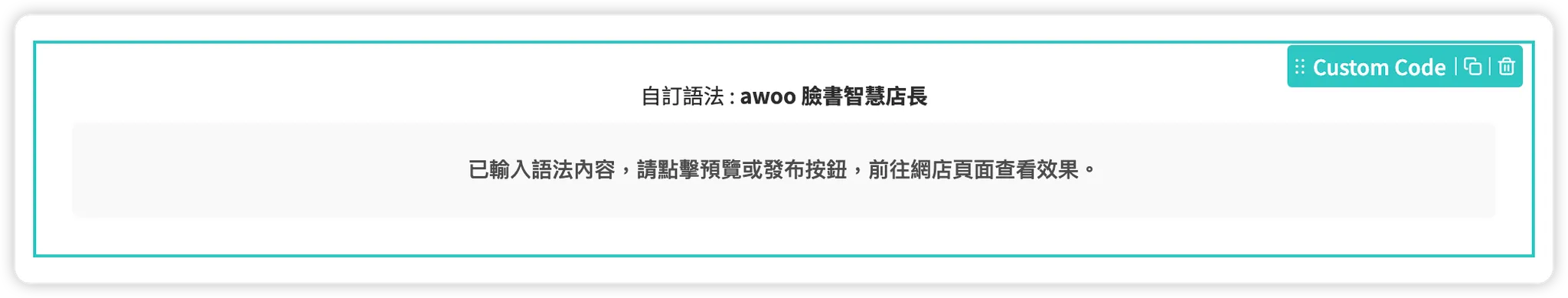編輯完 code 按下「儲存」按鈕後,畫布裡的元件提示框會變成灰色,指引您如何確認語法效果