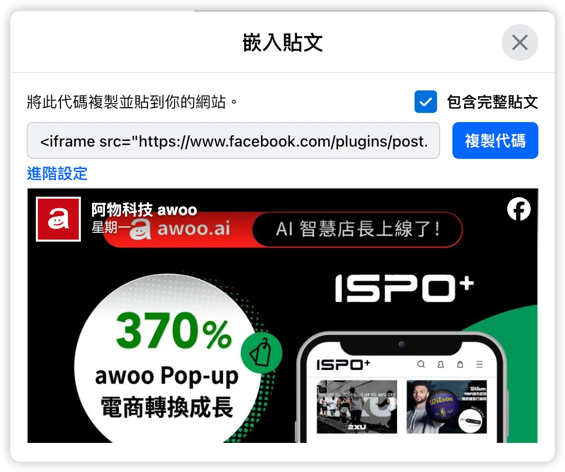 ✅️ 嵌入 Facebook、Instagram、Threads、Twitter (X) 等貼文