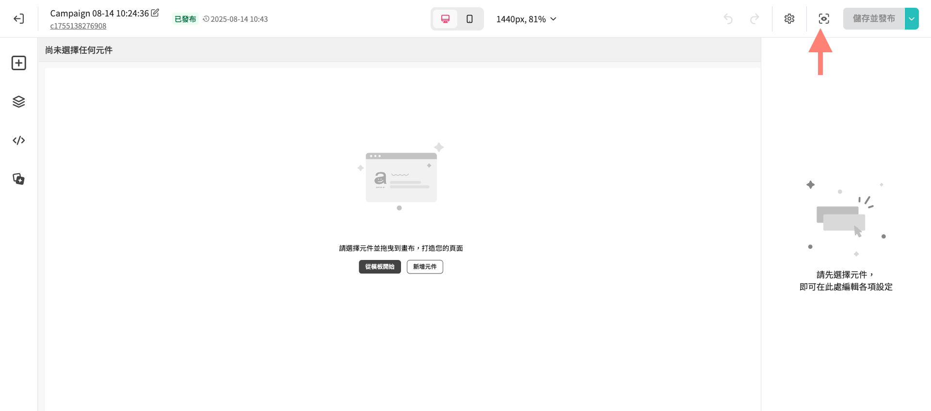 - 在頁面編輯器的右上角,點擊 「儲存」 或 「儲存並發布」 按鈕,可保存目前頁面的內容: